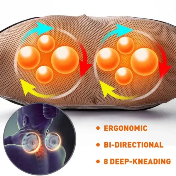 16 Deep Tissue Kneading Nodes: The neck massager with heat has 3D kneading massage rollers and 16 massage rotation nodes, providing massage for your neck, back, shoulders, providing you with a relaxing experience anytime, anywhere .,High-Quality Materials: The massager is made of high-quality breathable mesh and PU leather, providing a very comfortable experience and easy to use and clean.,Adjustable Speed and Direction Control: With three adjustable speeds, you can decide to adjust the device to deliver massage based on your personal preference. Press the direction buttons to change direction. The massager changes direction on its own every minute. Don’t worry about falling asleep, the device automatically turns off after 15 minutes,Ergonomic Design: The U-shaped ergonomic design of this acupressure pillow massager matches the contours of the body, so it can provide effective massage for the whole body, such as neck and shoulders, back, waist, legs, calves and feet.,Multi-Purpose Arm Straps: Free your hands for other projects while enjoying automatic electric neck and shoulder massage. The massage pillow position can be adjusted for the best fit and the massage intensity can be adjusted by pulling on the straps.,USE EVERYWHERE: Easy to carry and even easy to wear. So you can use it anytime and anywhere. This massager comes with a home power adapter and car charger, allowing you to enjoy the perfect massage at home, in the office, or in the car.