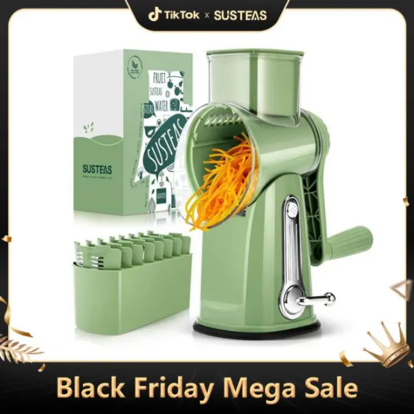 【Designed for Your Kitchen】: This hand crank cheese grater is a functional and aesthetically pleasing kitchen essential, with components made of 18/10 stainless steel blades and food-grade materials that are BPA free for peace of mind. As the representative color of nature, green is brought to your home by SUMETAS, which can add a touch of natural beauty to your kitchen and enjoy healthy food easily.